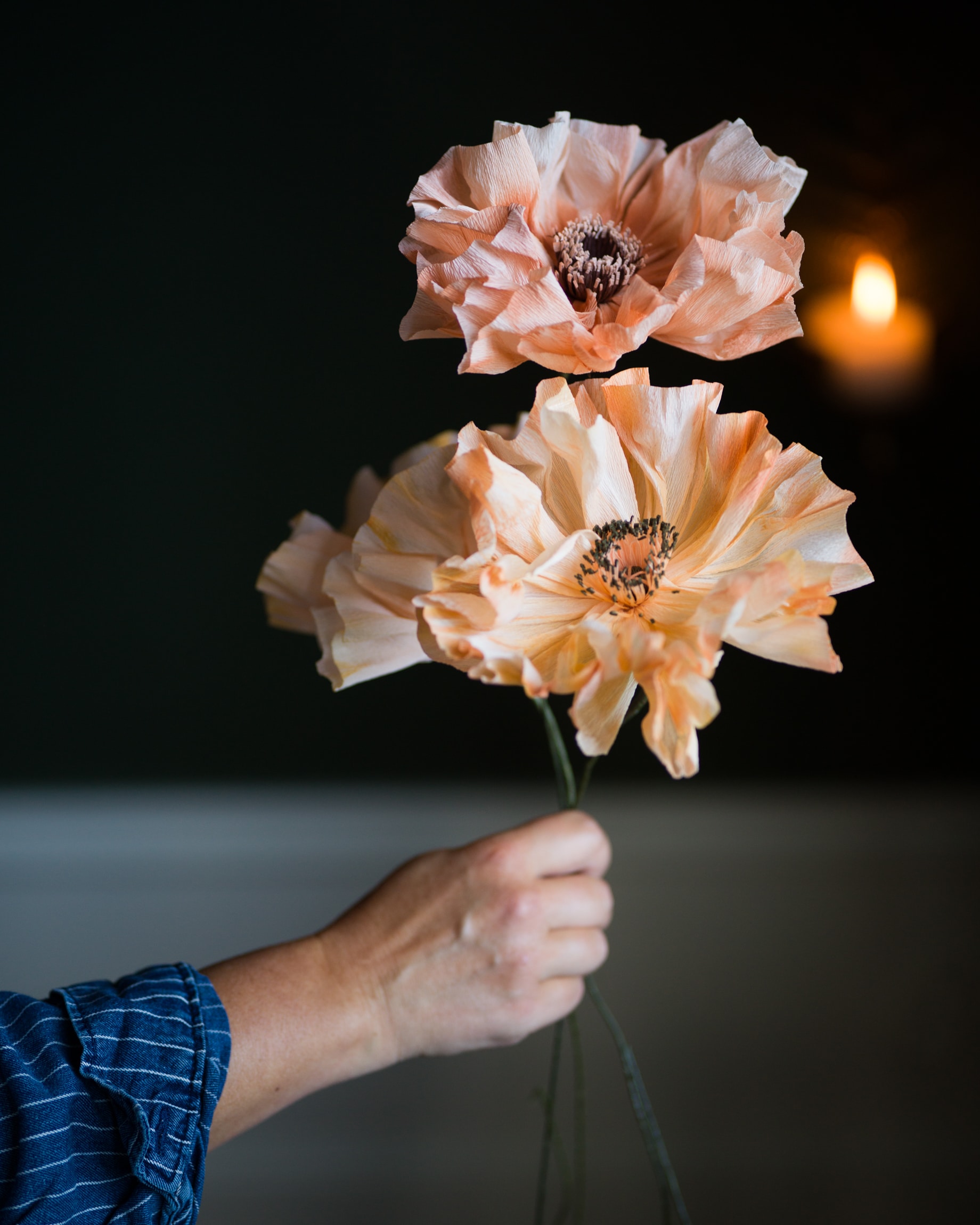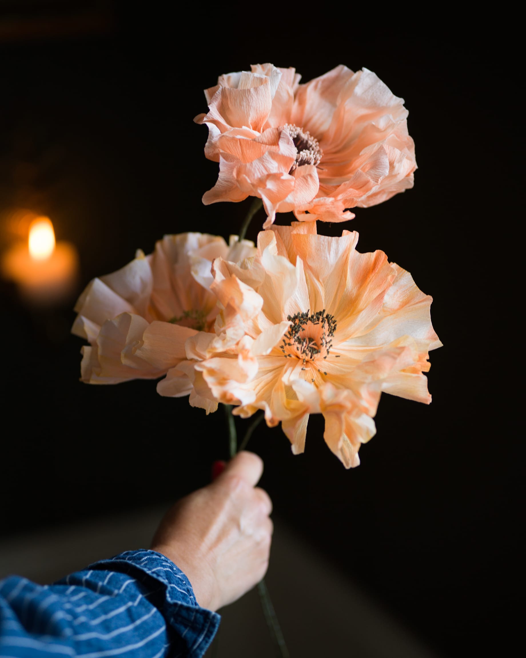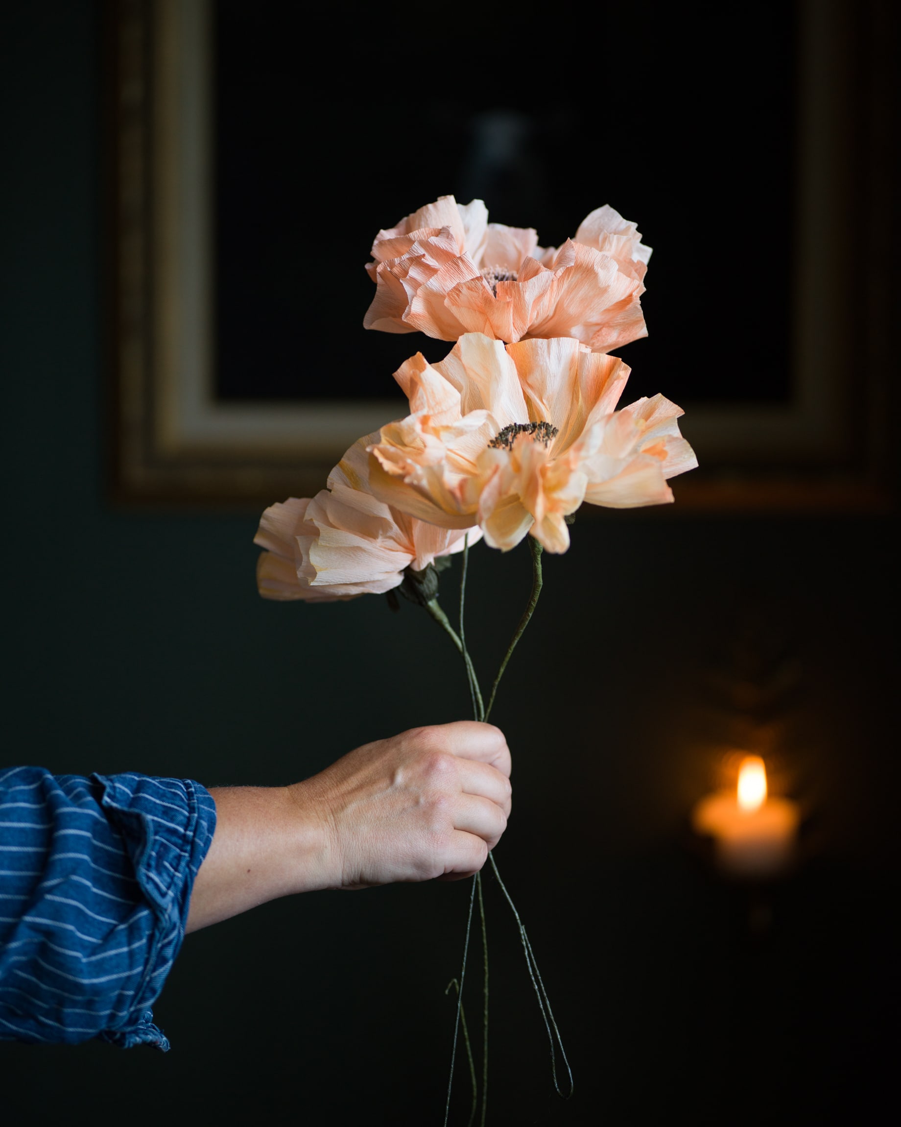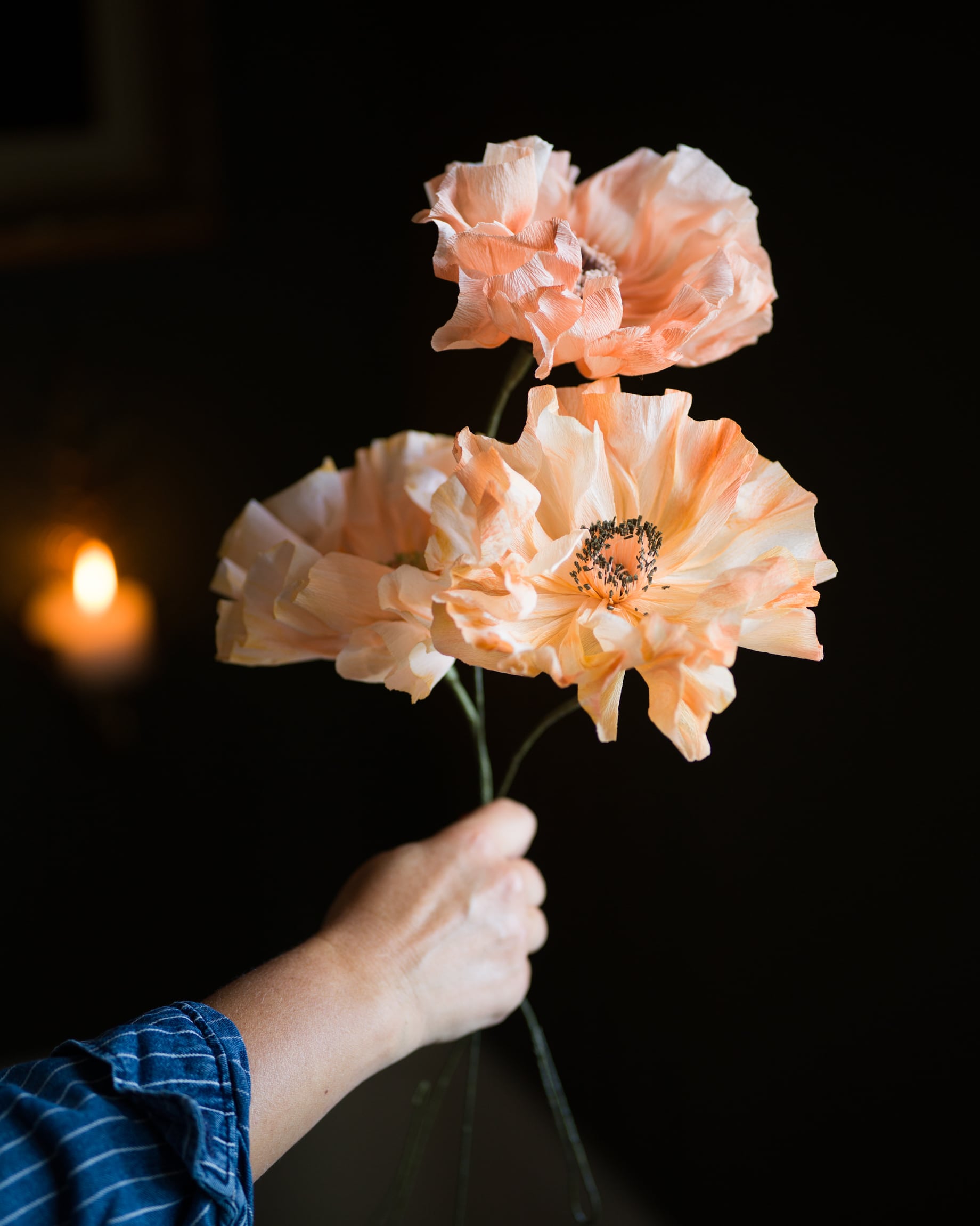 Varje blomma jag gör blir till ett unikt litet konstverk. Pappret färgas in, hängs på tork och varje litet blomblad och pistill klipps och formas med omsorg.