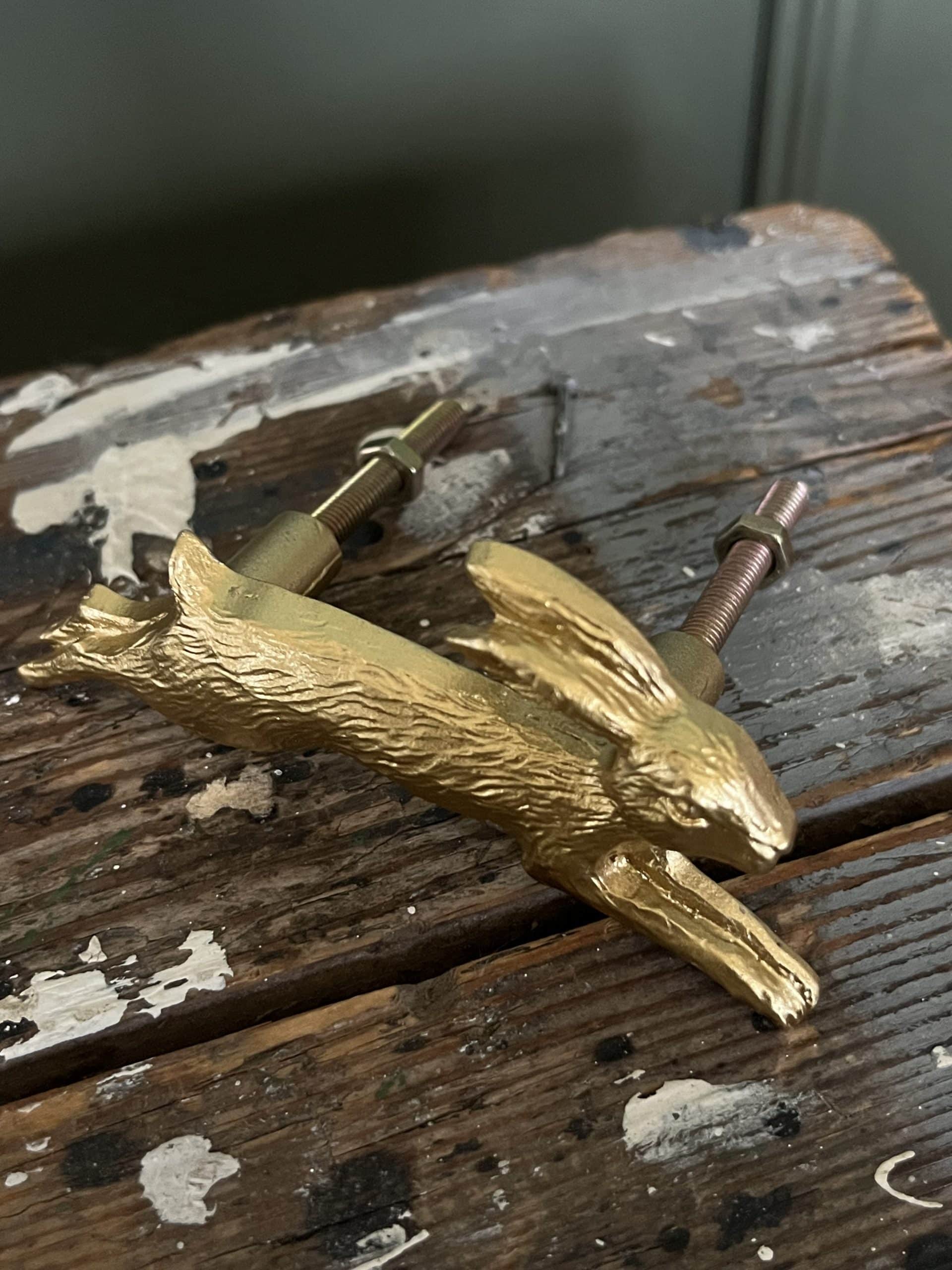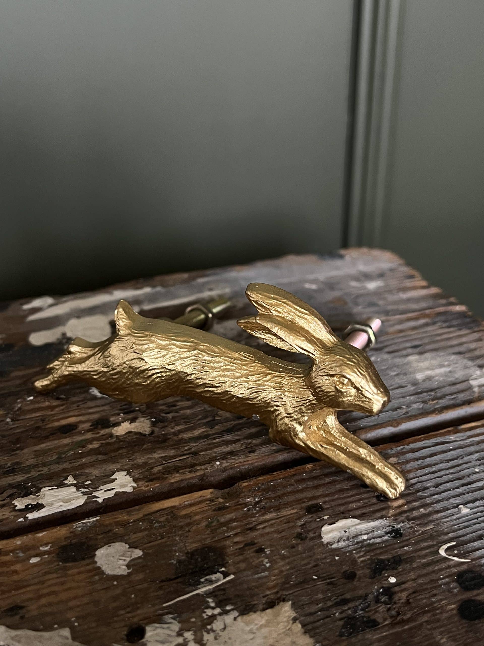 Haren är i guldfärgad metall och är helt enkelt ursöt, jag vill ha den överallt!:)