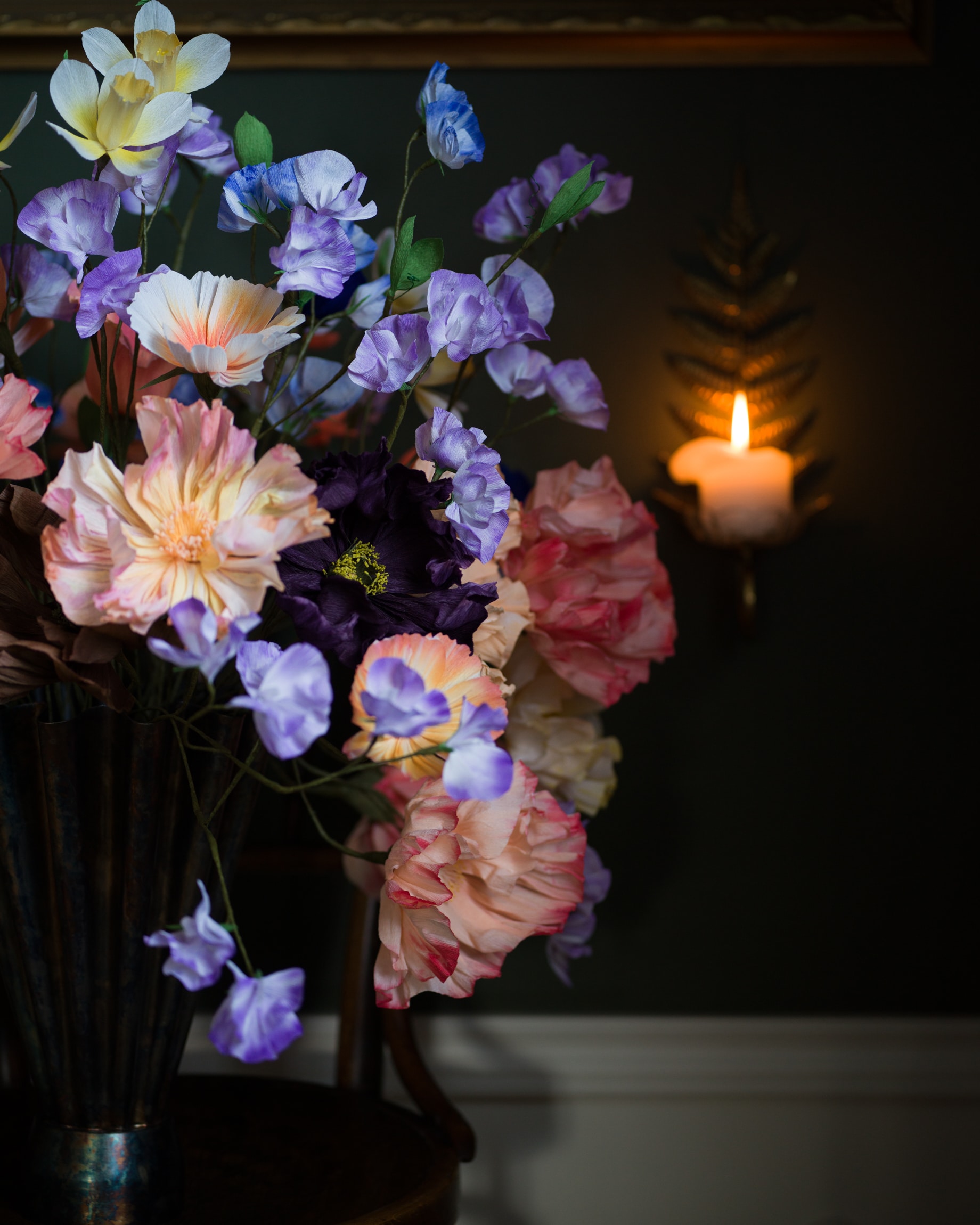 Alla mina blommor är handgjorda där varje kronblad och liten pistill har klippts med stor omsorg och noggrannhet. För mig är hantverket utforskande, jag är nyfiken på pappret, färgerna och kombinationerna.