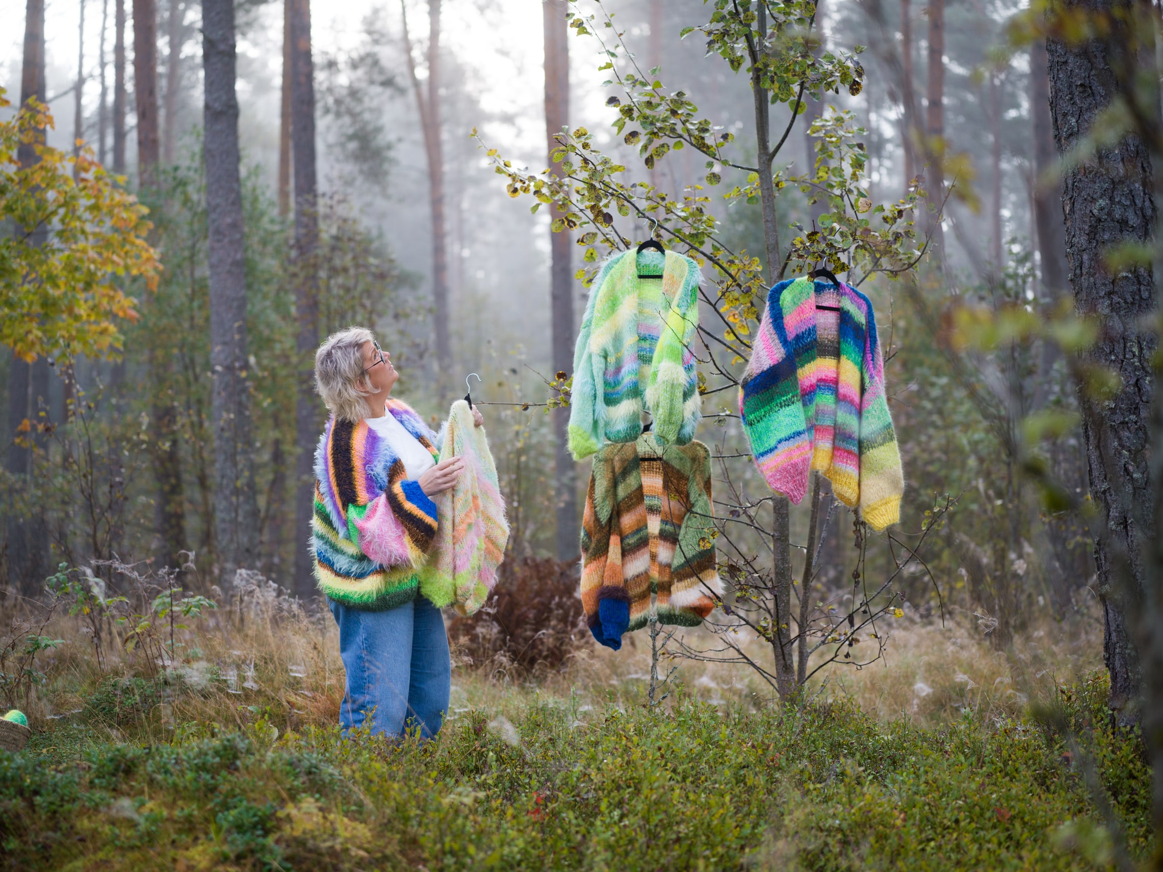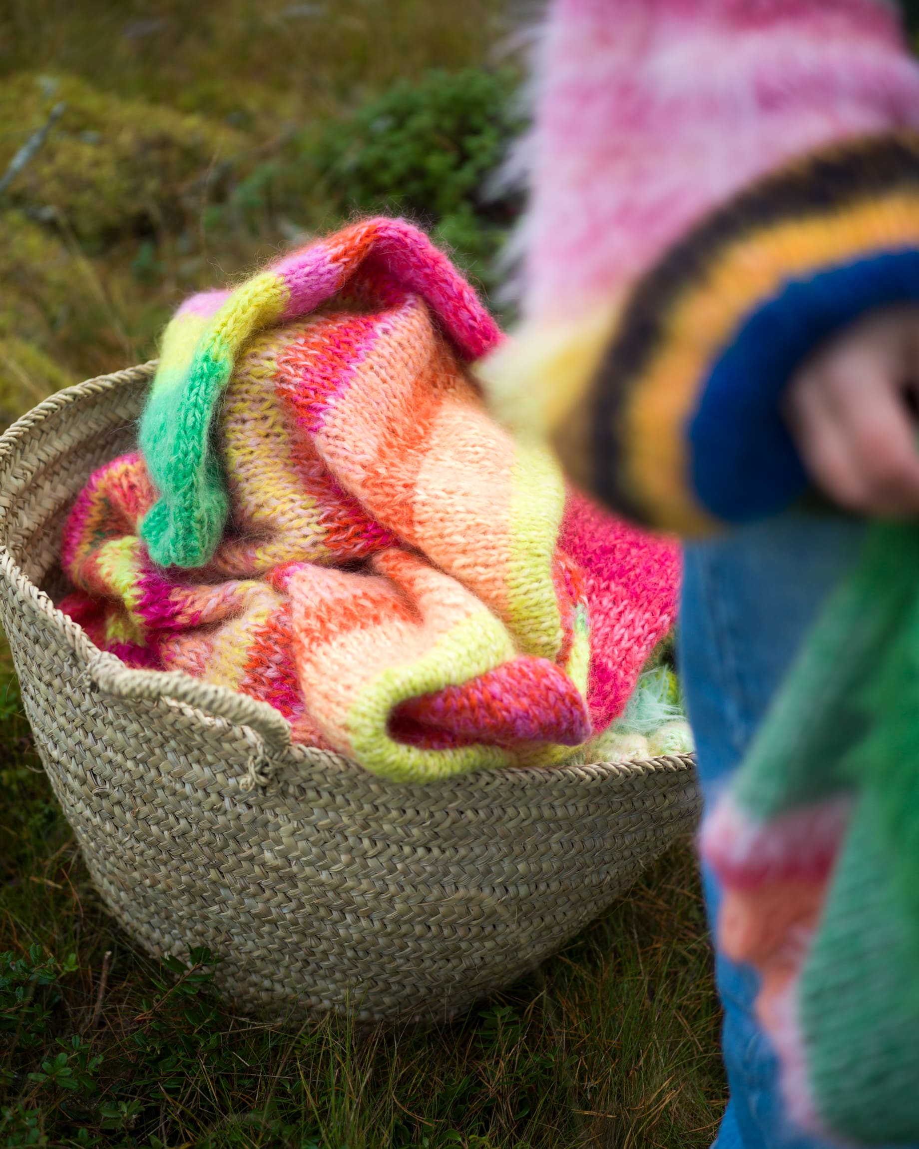 En handstickad färgbomb i fluffig mohair som jag själv stickat kommer här.