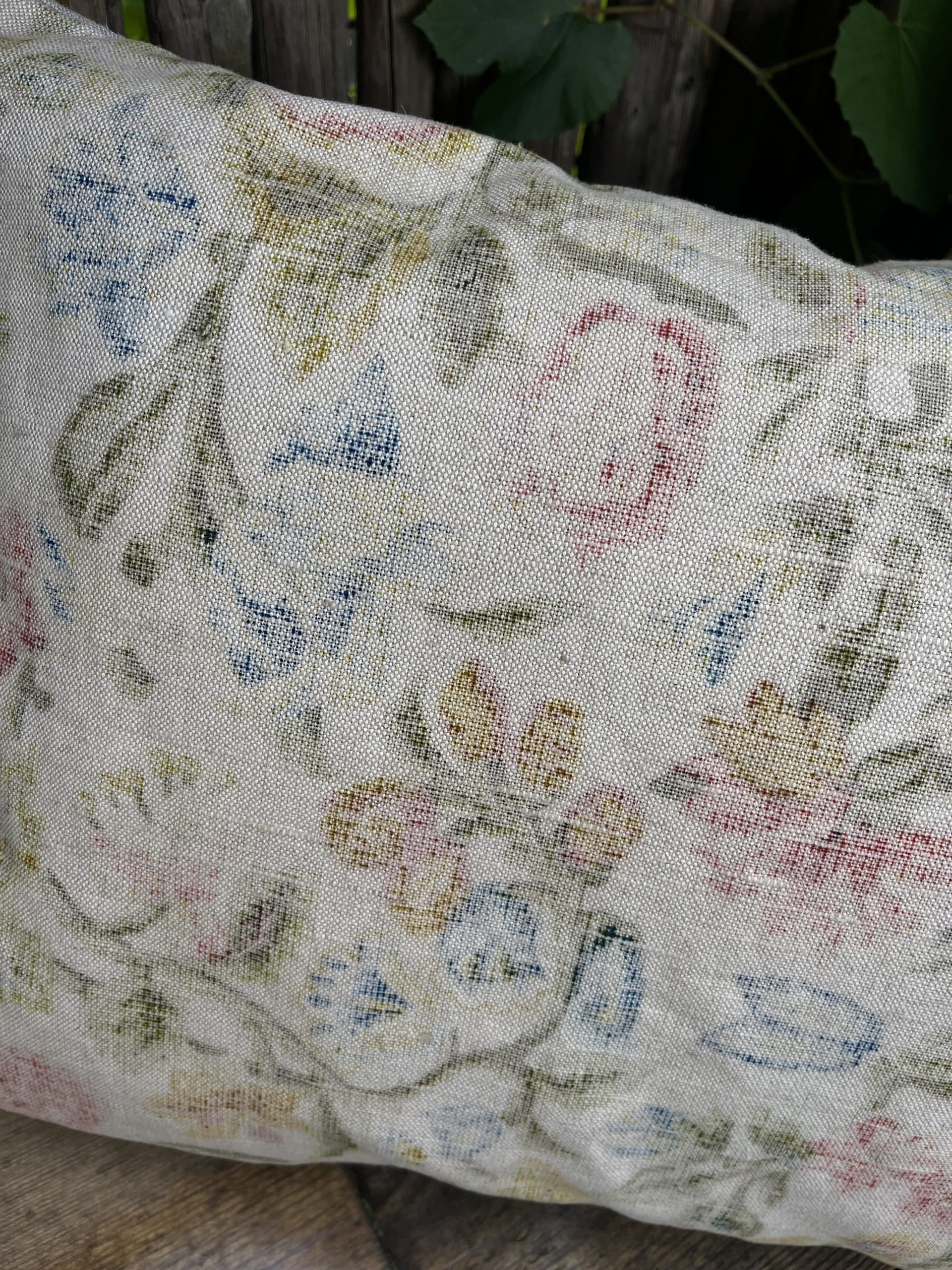 Kuddarna är helt unika och otroligt välsydda. De är sydda av gamla textilier i vackra nyanser från England.